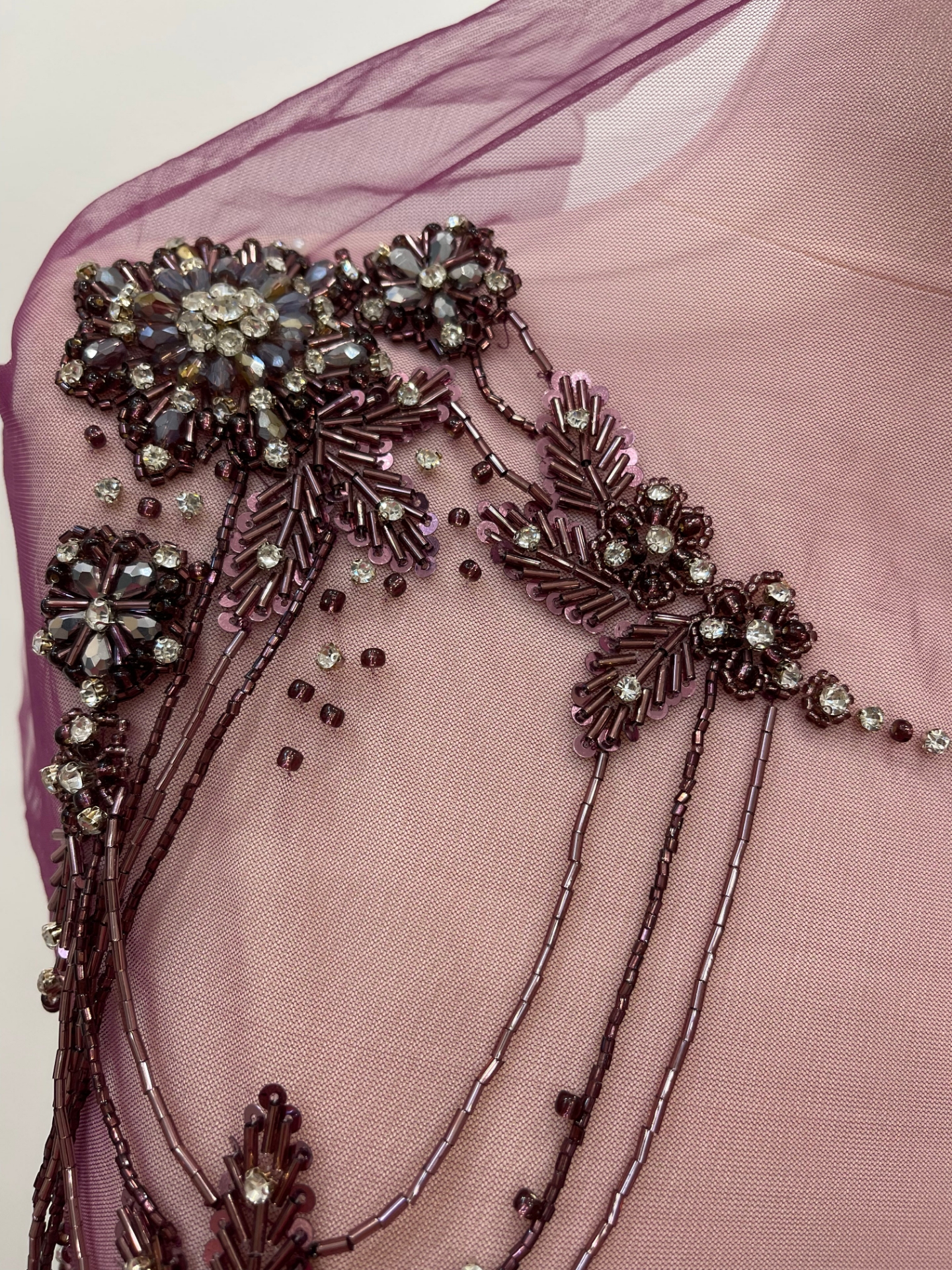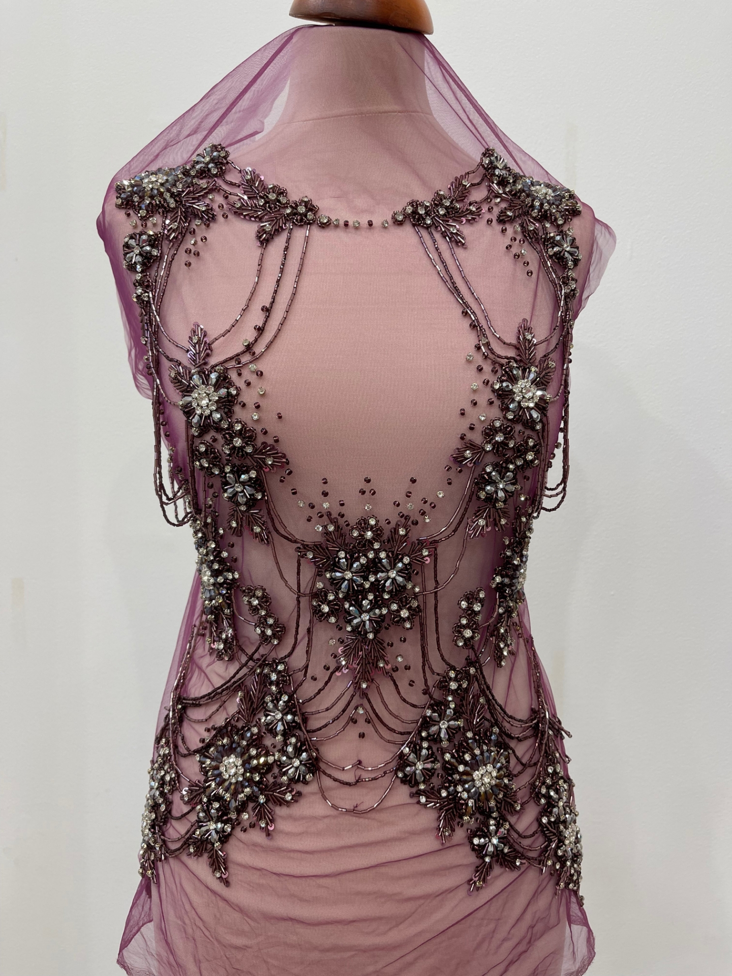 Set of two panels (front and back) entirely handcrafted with crystals, beads, and bead fringes. Handmade in India.